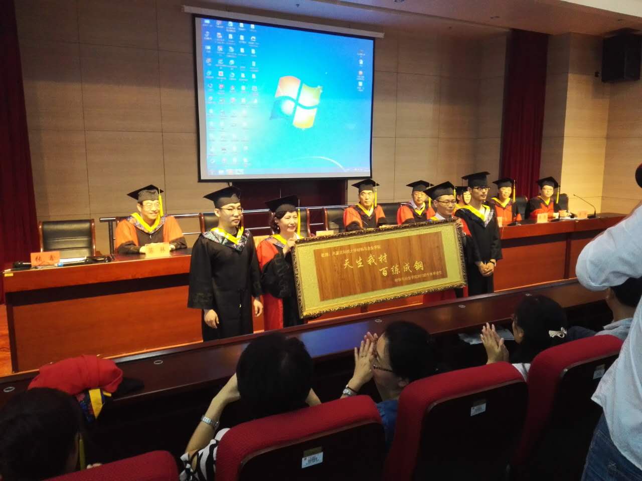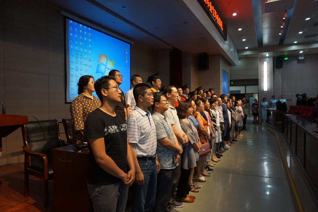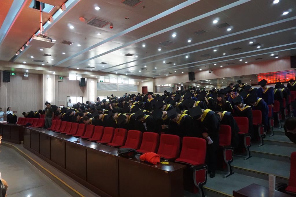 于图书馆B201多功能厅隆重举行2017届毕业生毕业典礼。研究生学院院长李义科教授、学生工作处王树彤副研究员、材料与冶金学院院长宋希文教授、副院长李涛教授以及教授委员会成员,各毕业班班主任、任课老师代表、学工办老师、后勤宿管老师代表以及学院研究生和本科毕业生参加了典礼,毕业典礼由张鑫副书记主持。
